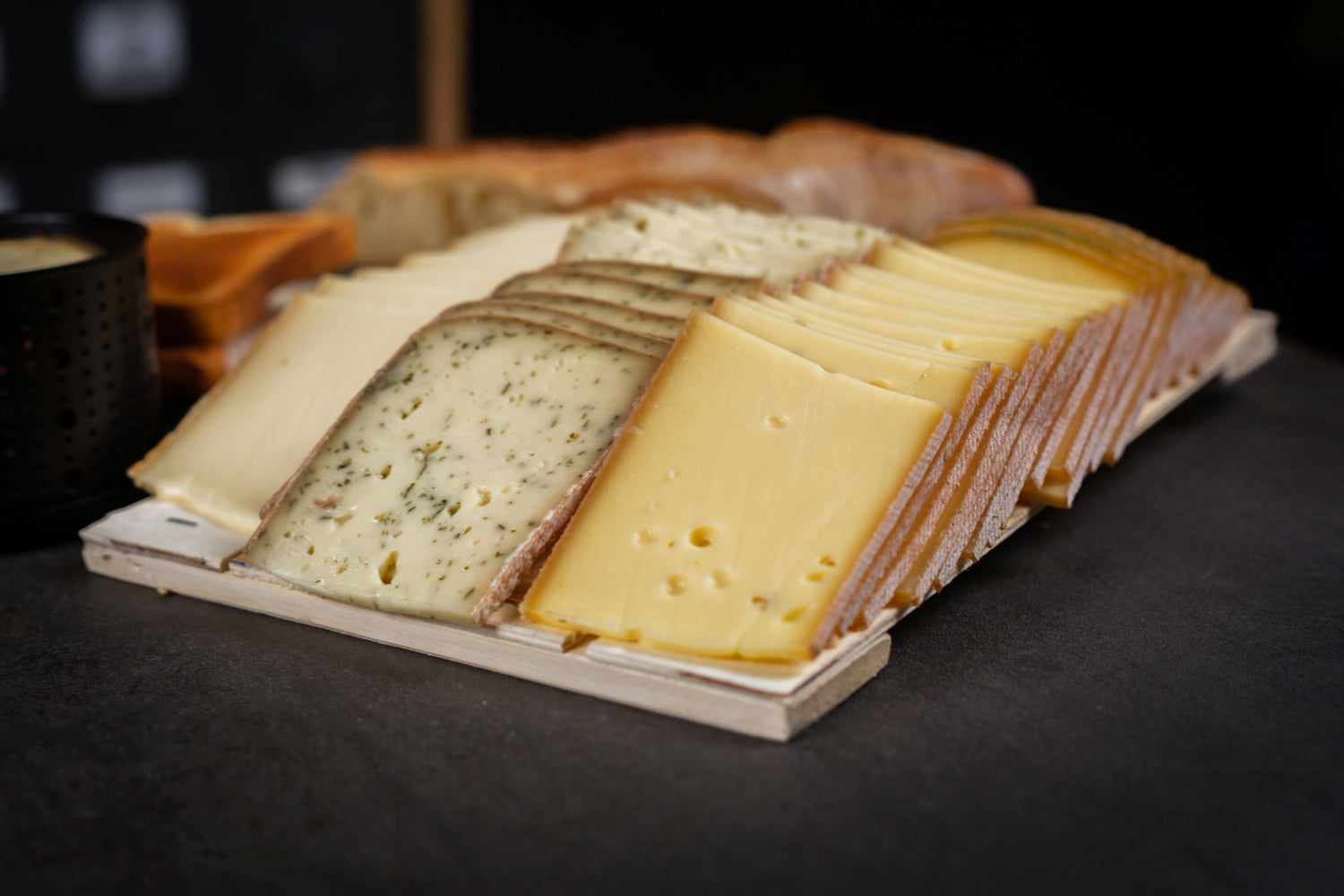 On request, Mathieu will prepare your cheese selection, sliced and arranged on a handcrafted wooden platter made from recycled materials by us. This eco-friendly approach encourages you to return the platter as soon as possible.