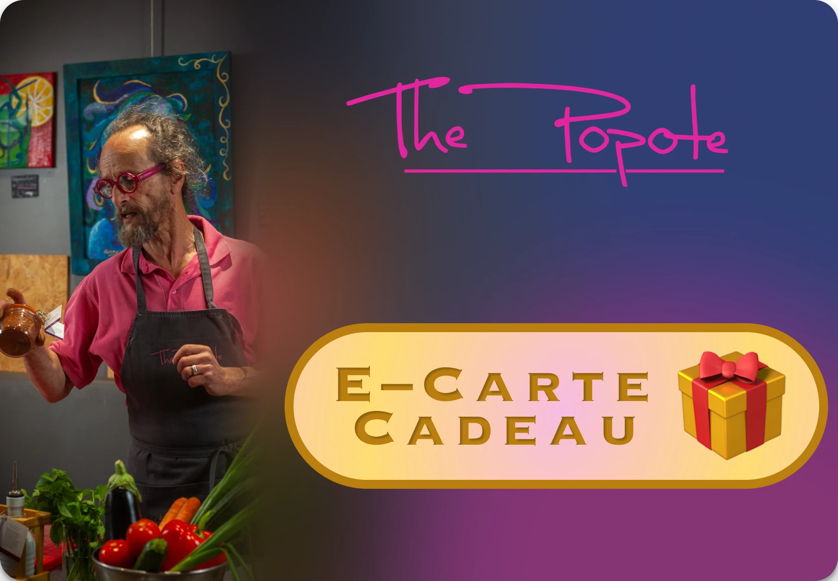 🎨 Une fois le paiement effectué, nous créerons une carte cadeau personnalisée et l’enverrons par e-mail directement au bénéficiaire, accompagnée de votre message et d’un code unique à utiliser sur notre site.En offrant la carte cadeau The Popote, vous offrez bien plus qu’un simple cadeau : vous offrez des moments gourmands inoubliables, qu’il s’agisse d’un atelier dirigé par le chef Philippe ou de la découverte de saveurs uniques. C’est une expérience riche en saveurs, apprentissages et convivialité.