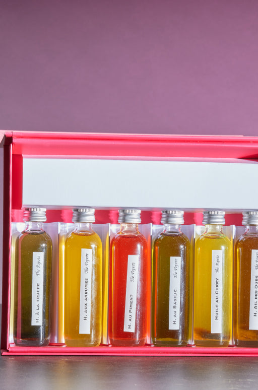 Les huiles parfumées soint des préparartions culinaires qui consistent à infuser des plantes ou des épices longuement dans de l'huile. De la civilisation atzèque à celle des romains, l'huile est un aliment aux multiples utilisations.