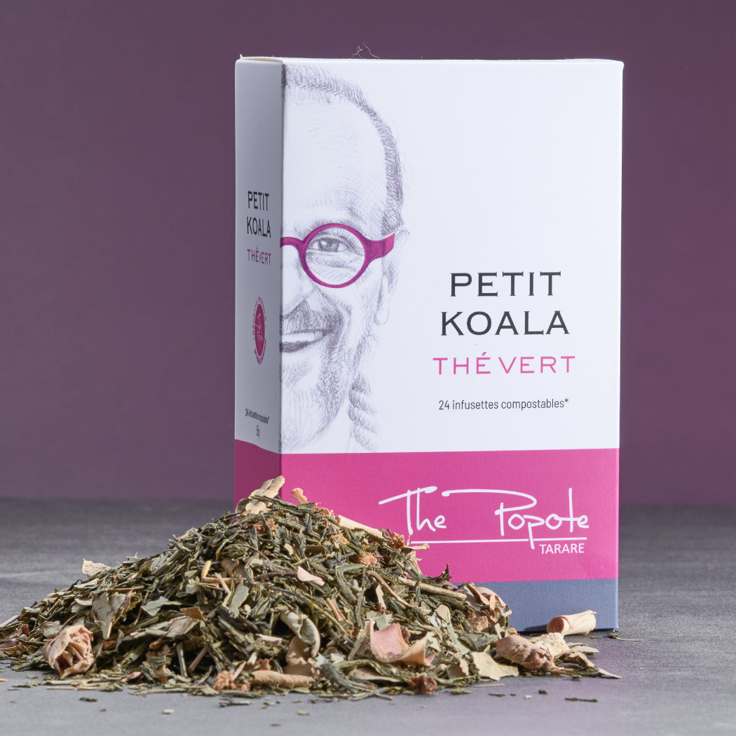 "Petit Koala" est un thé vert aux douces effluves d'eucalyptus et d'agrumes. En bouche, l'infusion de couleur claire sensation procure une sensation fraiche et à la fois apaisante. Ce thé s'apprécie au petit déjeuner ou après une dure journée de travail.