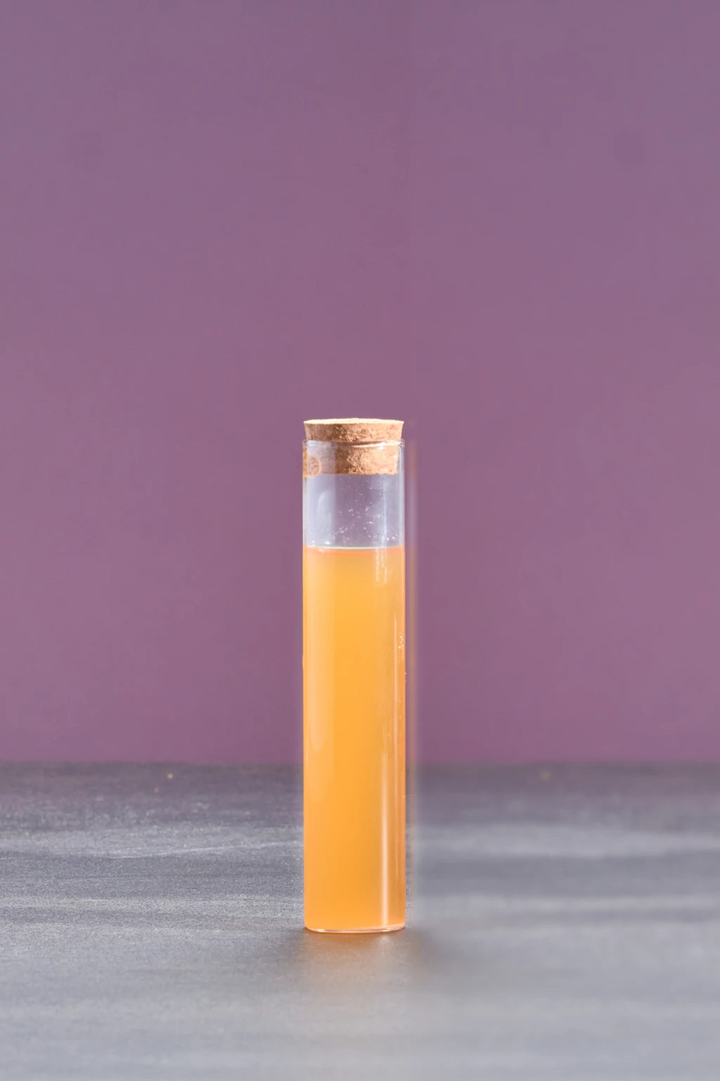 Bouteille en verre de 25 cl avec bouchon de liège et munie de son bec doseur .